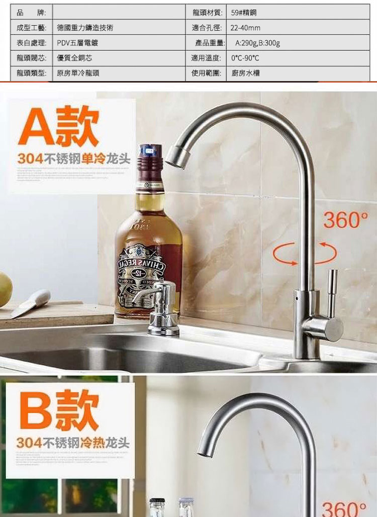 304不銹鋼廚房冷熱水龍頭