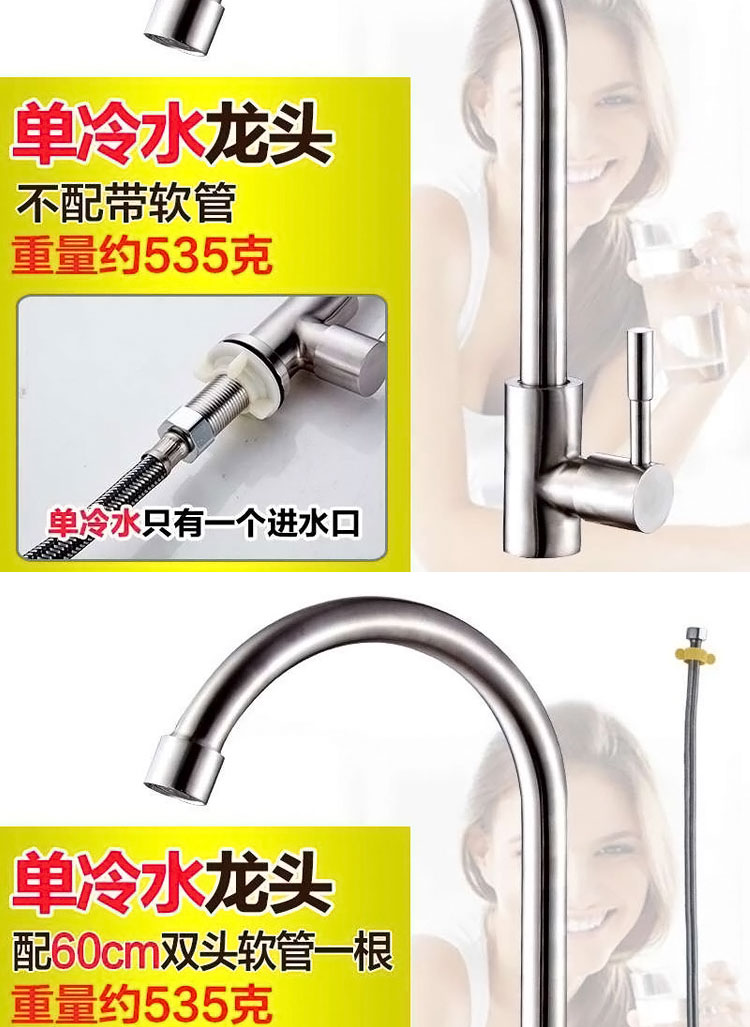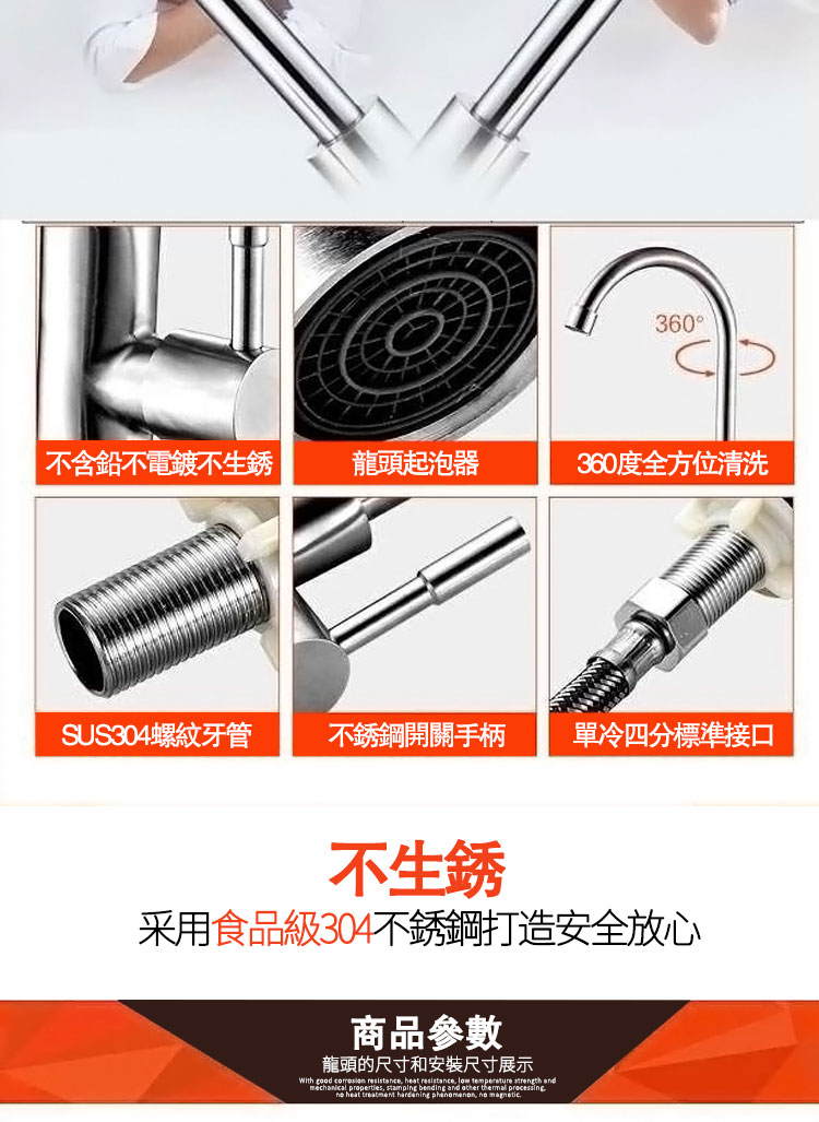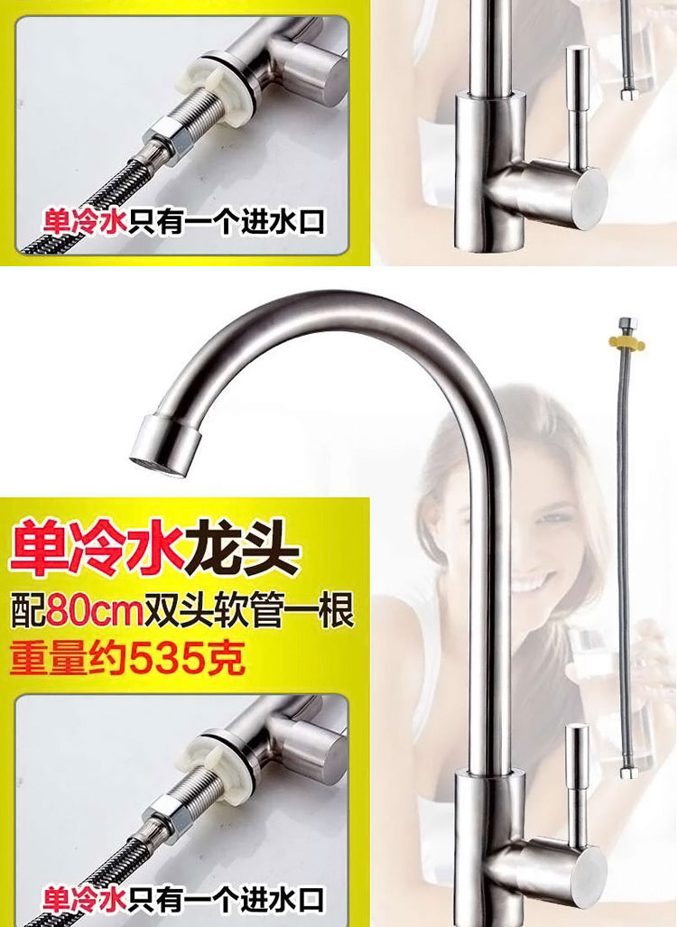 304不鏽鋼廚房龍頭家用洗菜盆水槽冷熱龍頭洗手池全銅 單冷水龍頭