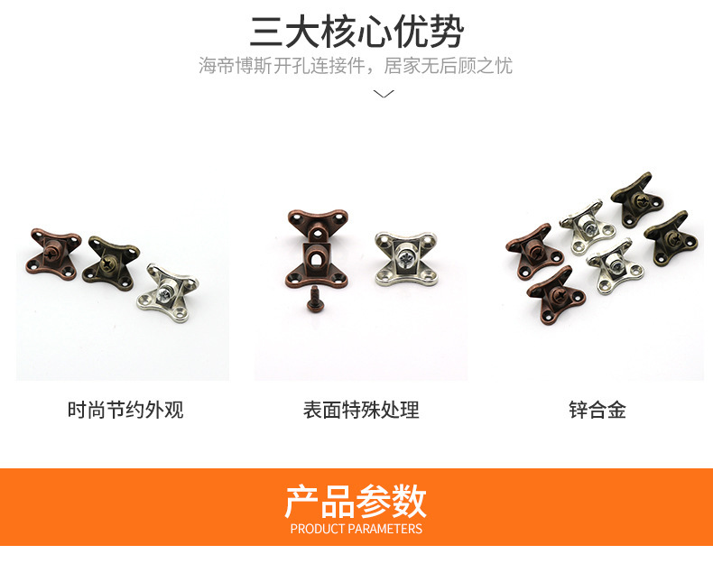 加厚鋅合金蝴蝶角碼隔板託直角角碼連接件免開孔三合一連接件