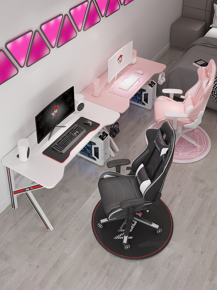 雙人電桌椅套裝臺式電腦桌家用情侶粉色書桌網吧全套一體技