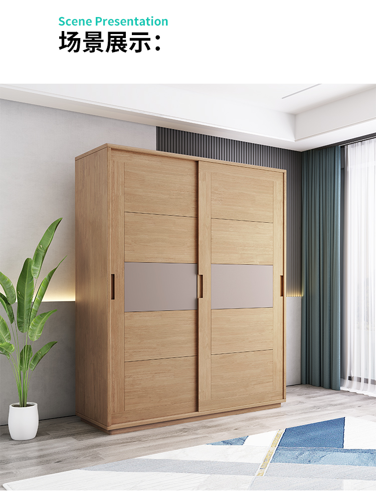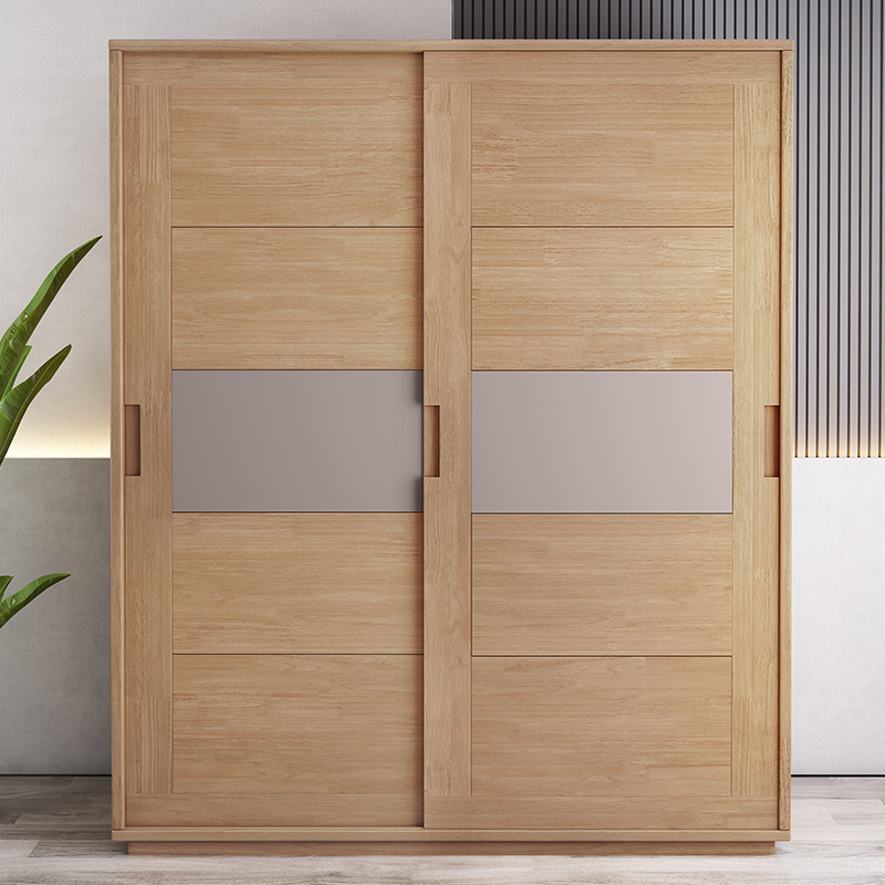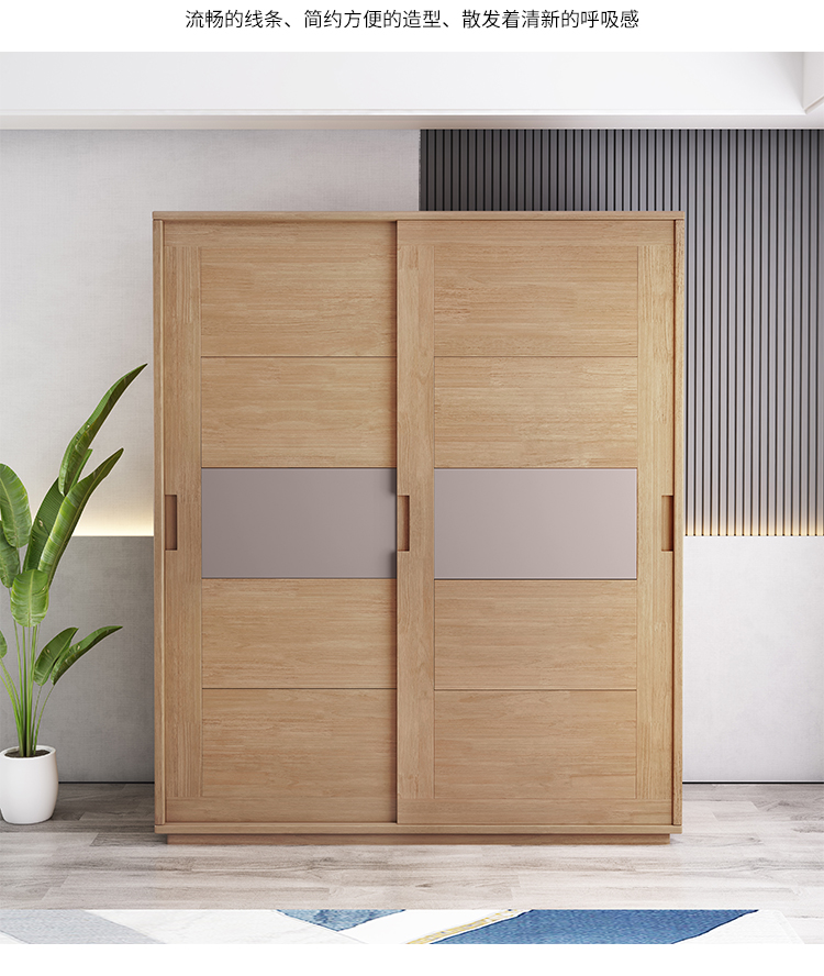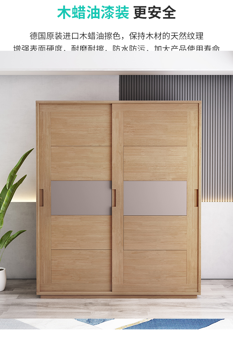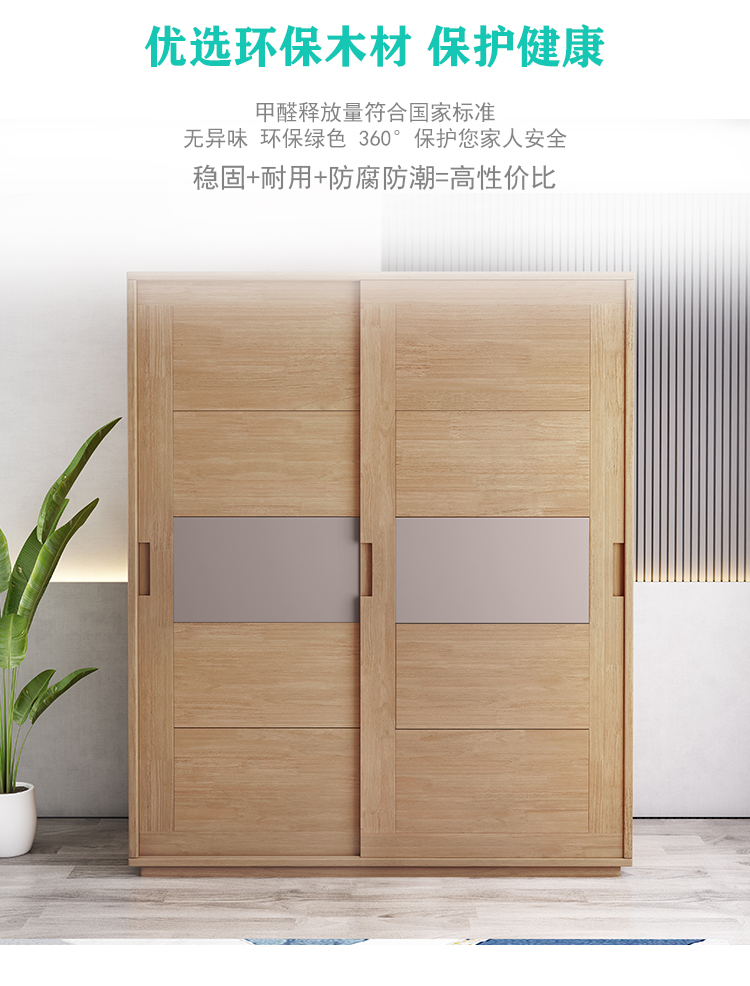 北歐全實木衣櫃日式橡膠木推拉門衣櫥移門兩門收納儲物櫃臥室傢俱