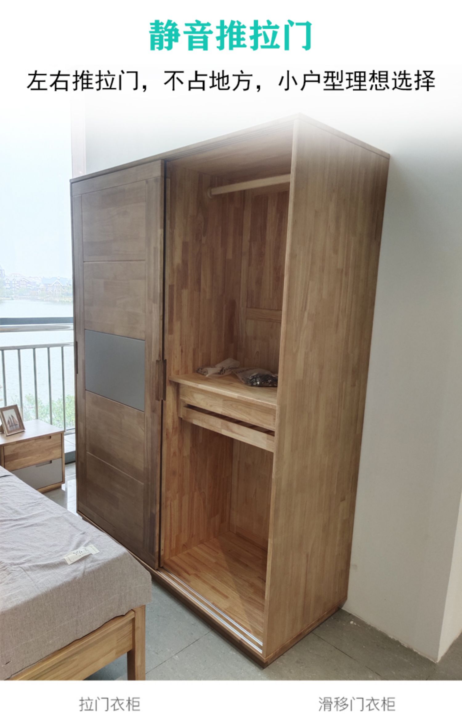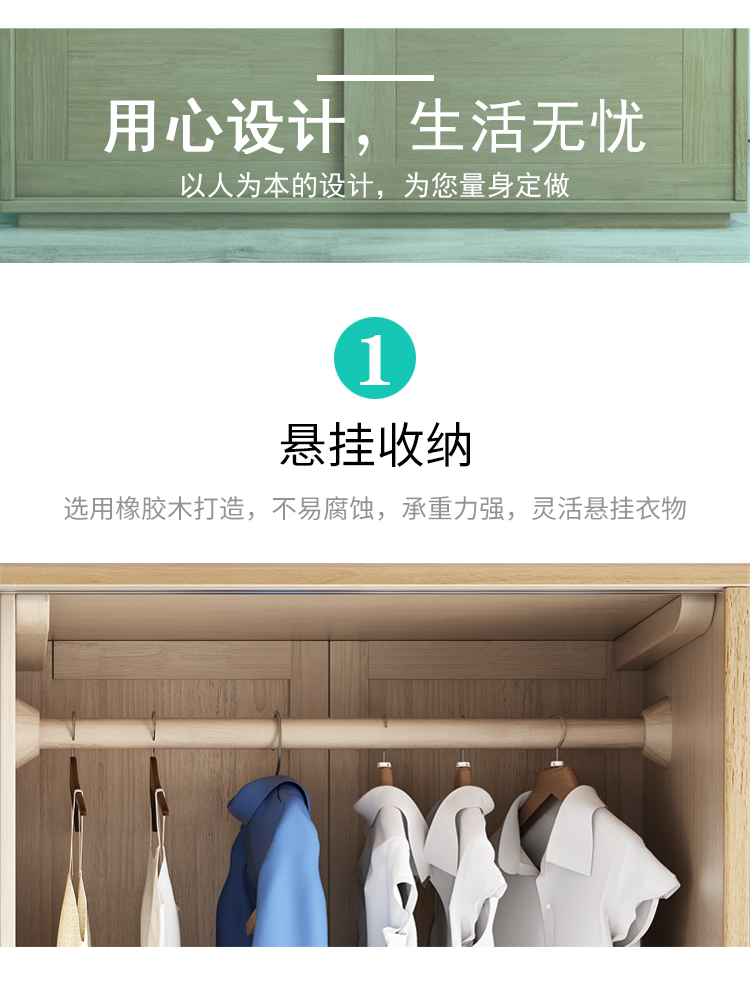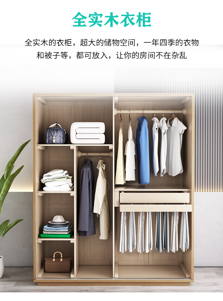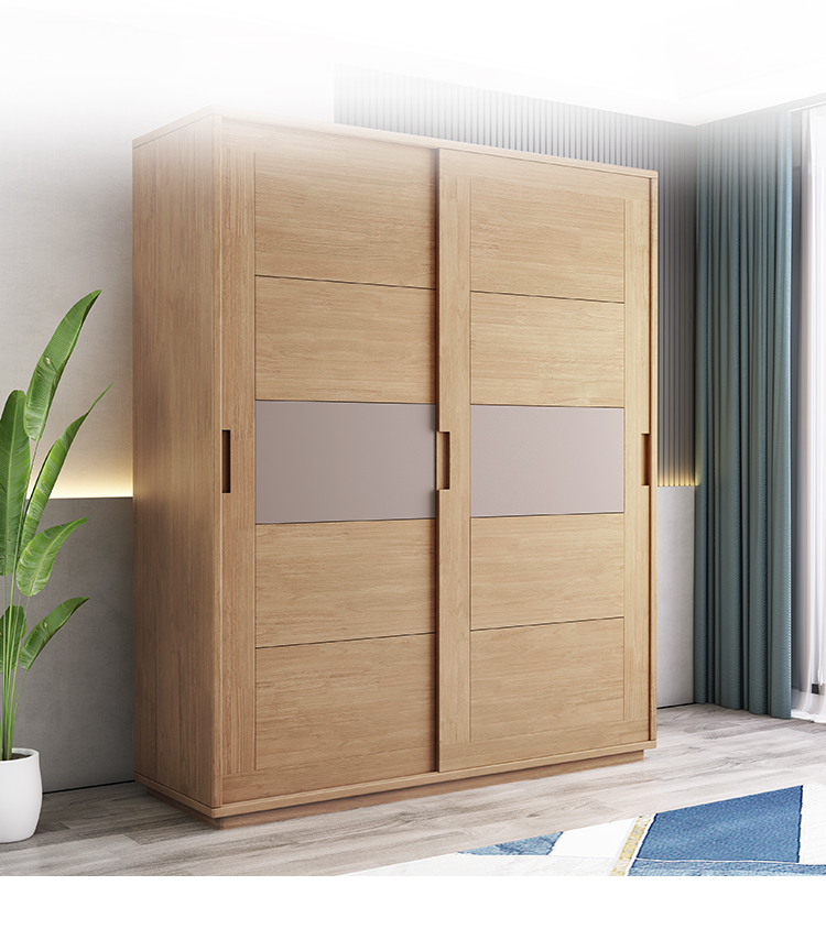 北歐全實木衣櫃日式橡膠木推拉門衣櫥移門兩門收納儲物櫃臥室傢俱