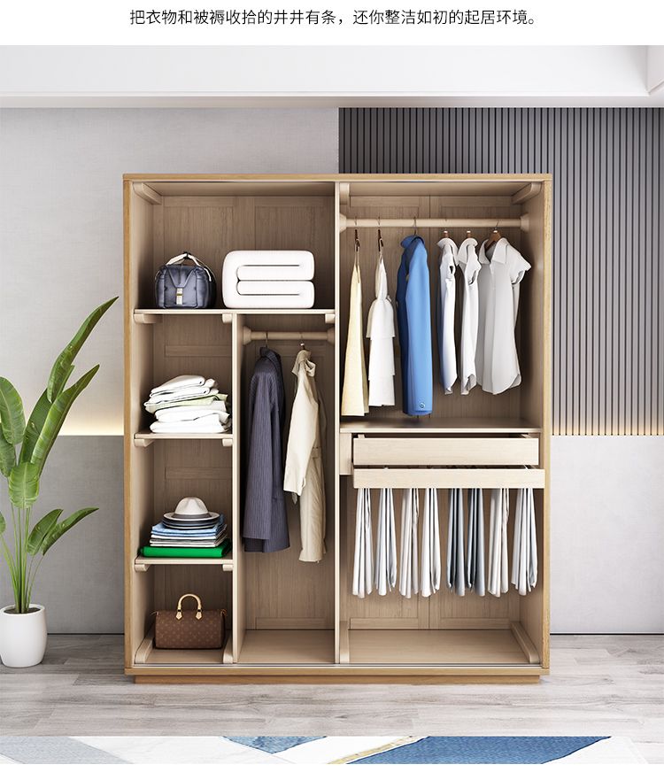 全實木衣櫃簡易整體推拉移門三四五六門橡木原木北歐衣櫥