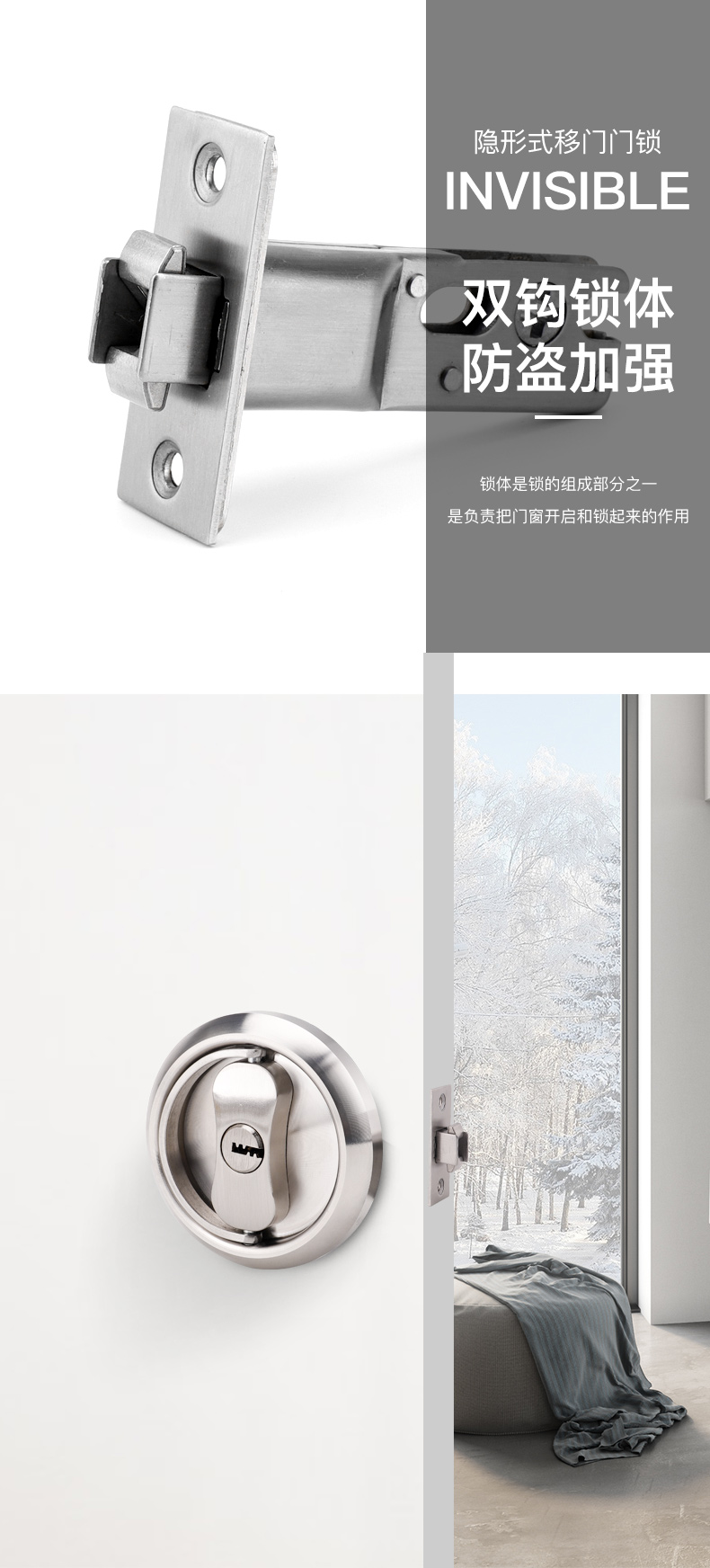 304不鏽鋼隱形暗藏式門鎖拉環鎖移門鎖臥室內門鎖暗鎖輔助鎖閉鎖