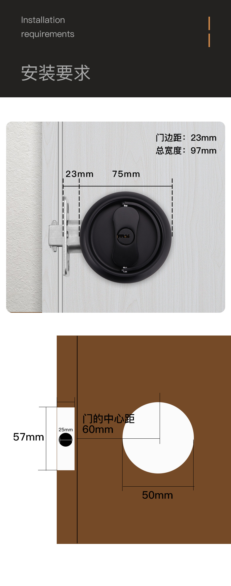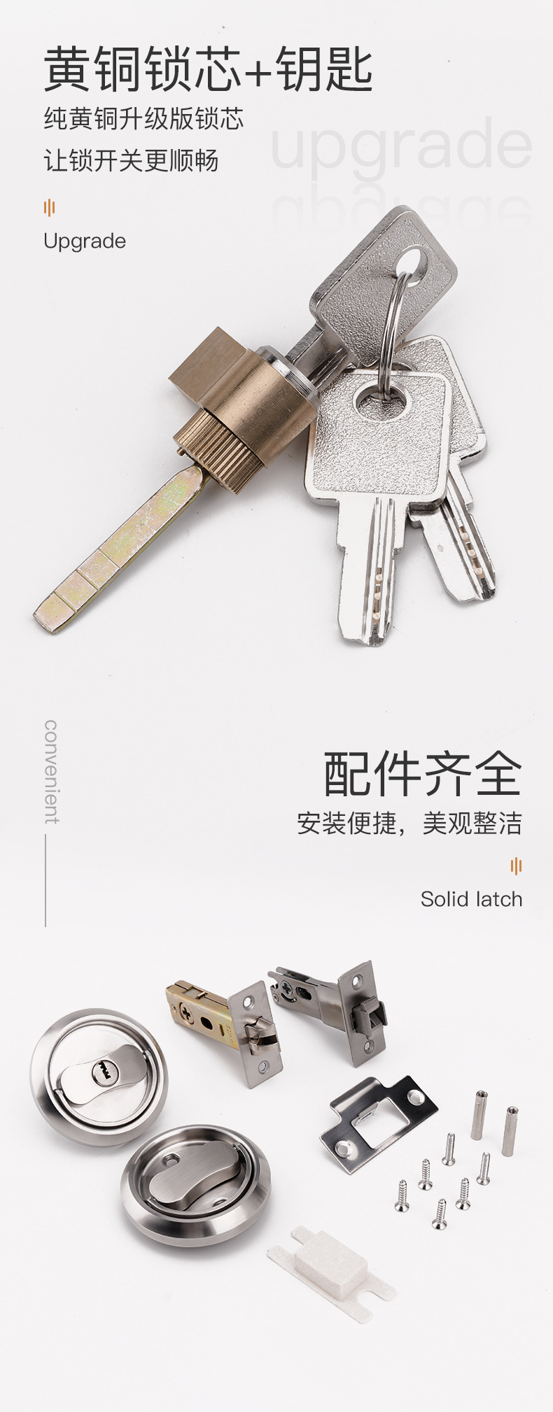 批發呆鎖單位面圓形室內木門鎖雙面暗裝輔助家用創奇D107