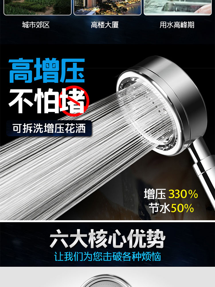 增壓花灑噴頭套裝太陽能熱水器噴頭洗澡水龍頭淋浴噴頭