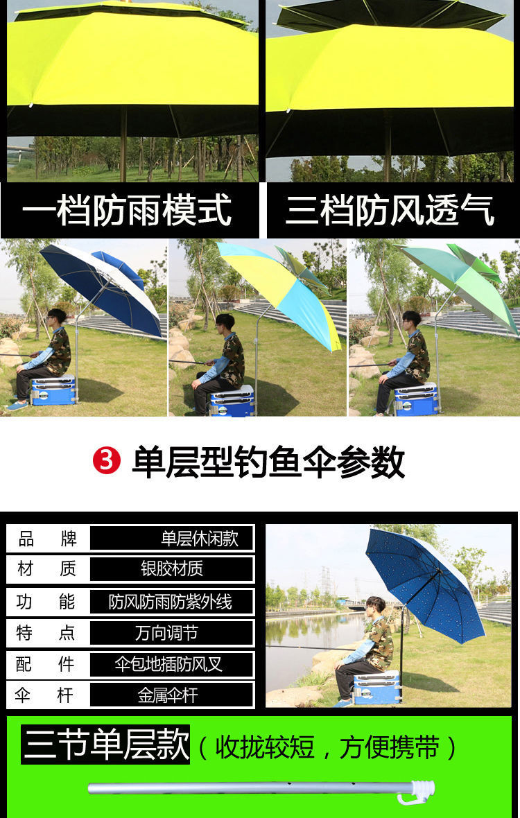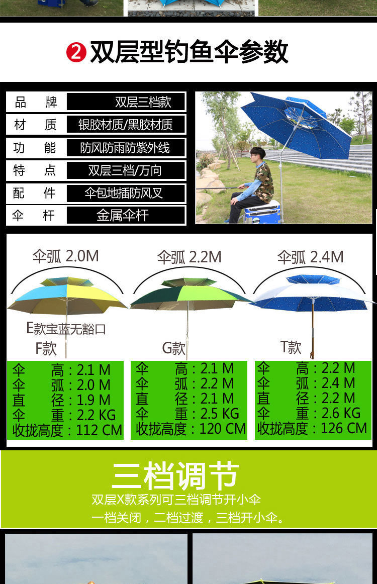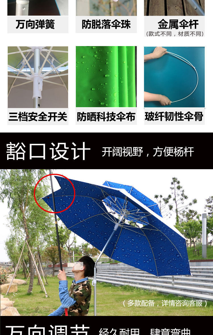 戶外釣魚傘大釣傘加厚萬向魚傘雙層防暴雨防曬防紫外線遮陽傘漁具