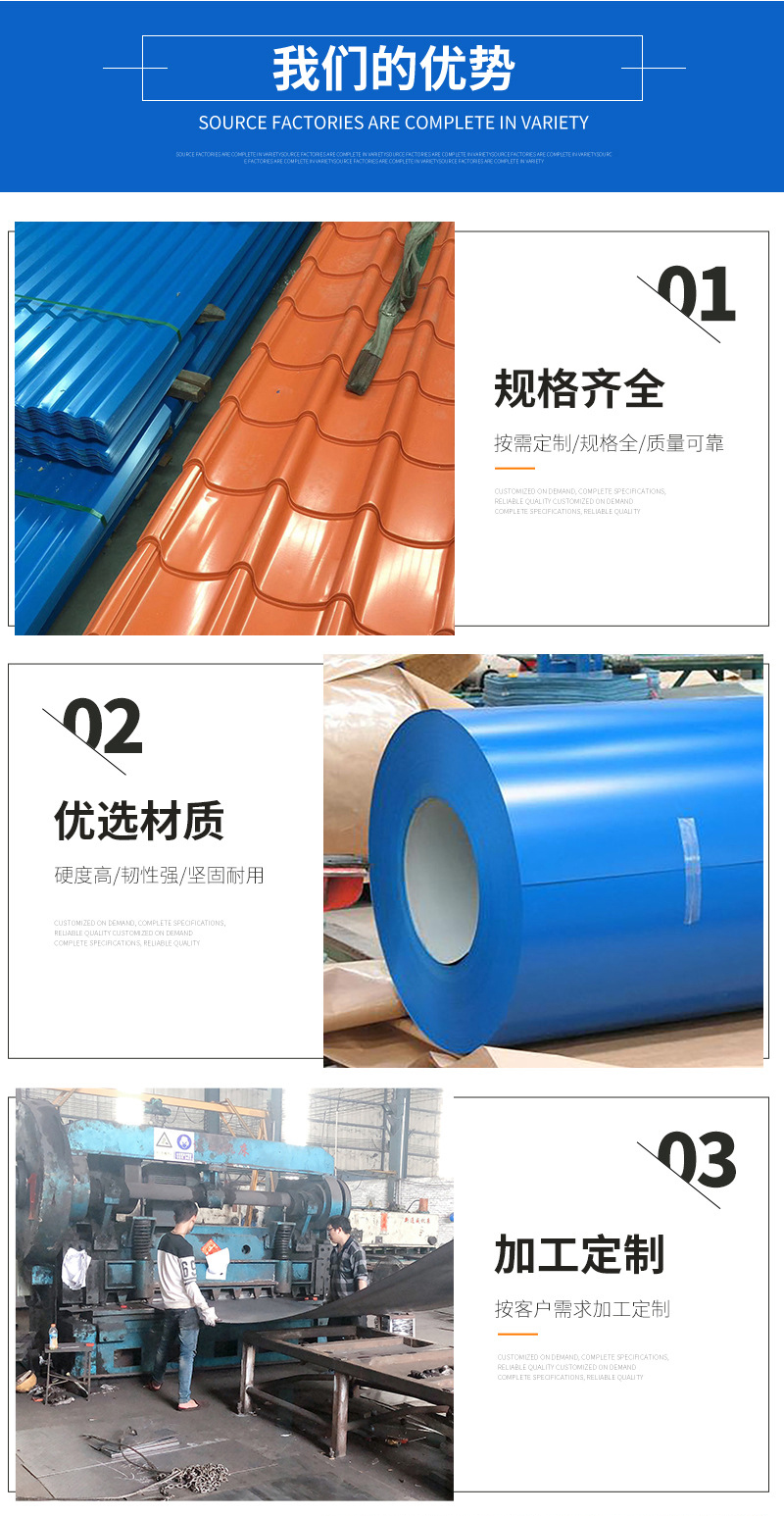 彩鋼板 彩塗卷 鍍鋅板 藍色紅色彩色塗層可定製加工