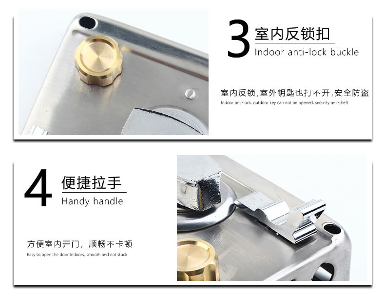 不鏽鋼大門防盜門鎖加厚面板把手鎖體C級鎖三件套木門鎖具套裝