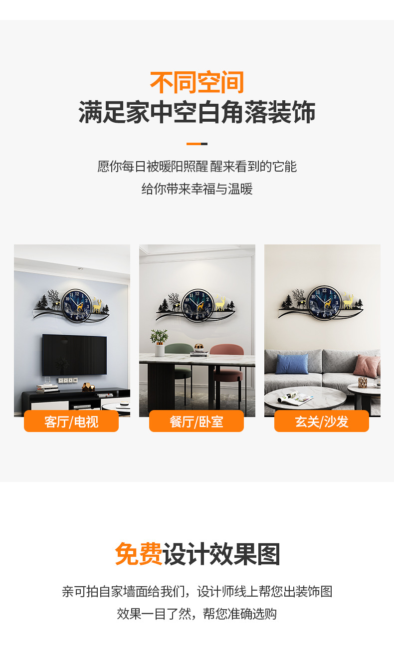 鐘錶家飾掛鐘客廳輕奢鐵藝時鐘創意家居裝飾壁掛牆壁鐘一件代發