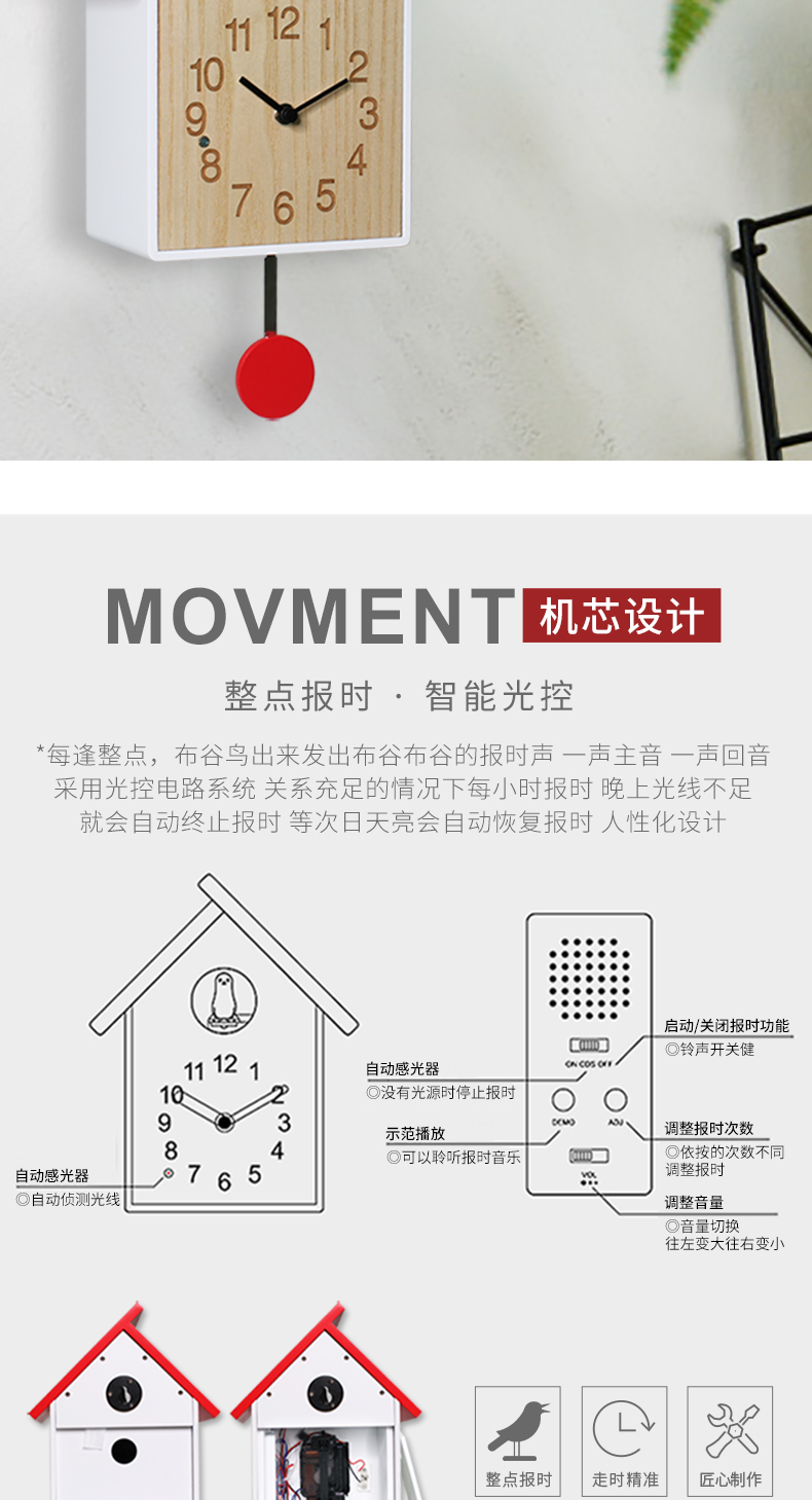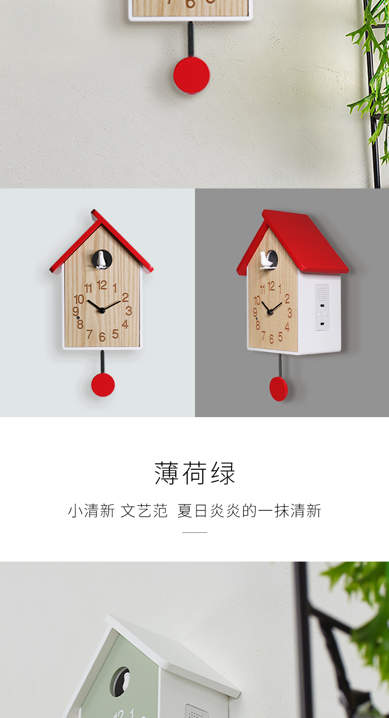 實木歐式布穀鳥鬧鐘創意兒童掛鐘客廳家用時尚報時咕咕鐘表