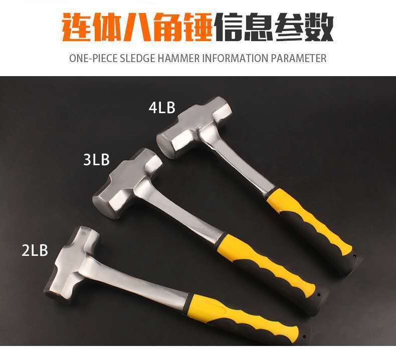 八角錘一體石工錘重型大號方頭錘拆牆工具家用鐵錘二錘大榔頭手錘