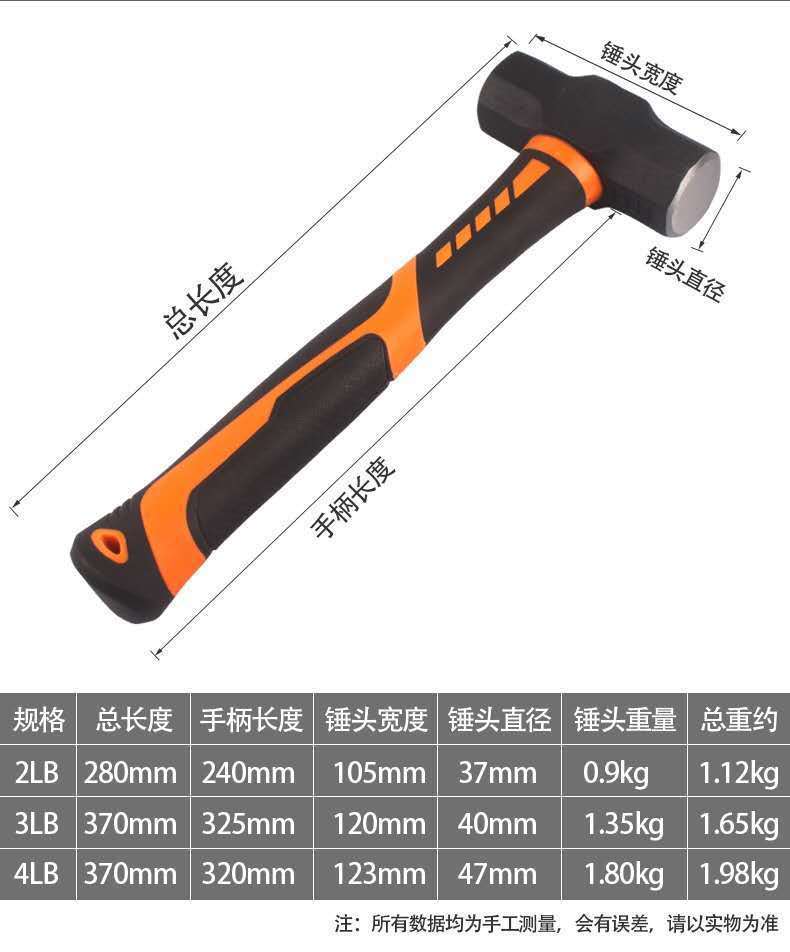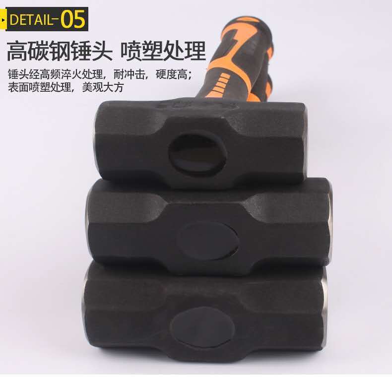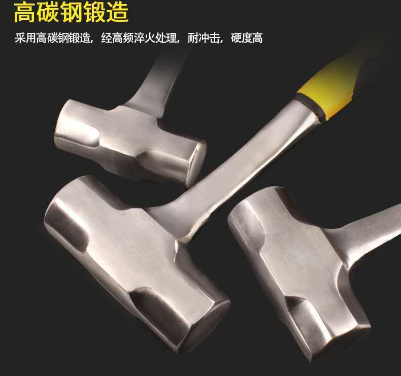纖維柄石工錘高碳鋼 重型方頭錘榔頭錘子1000g 鐵錘砸牆拆牆工具