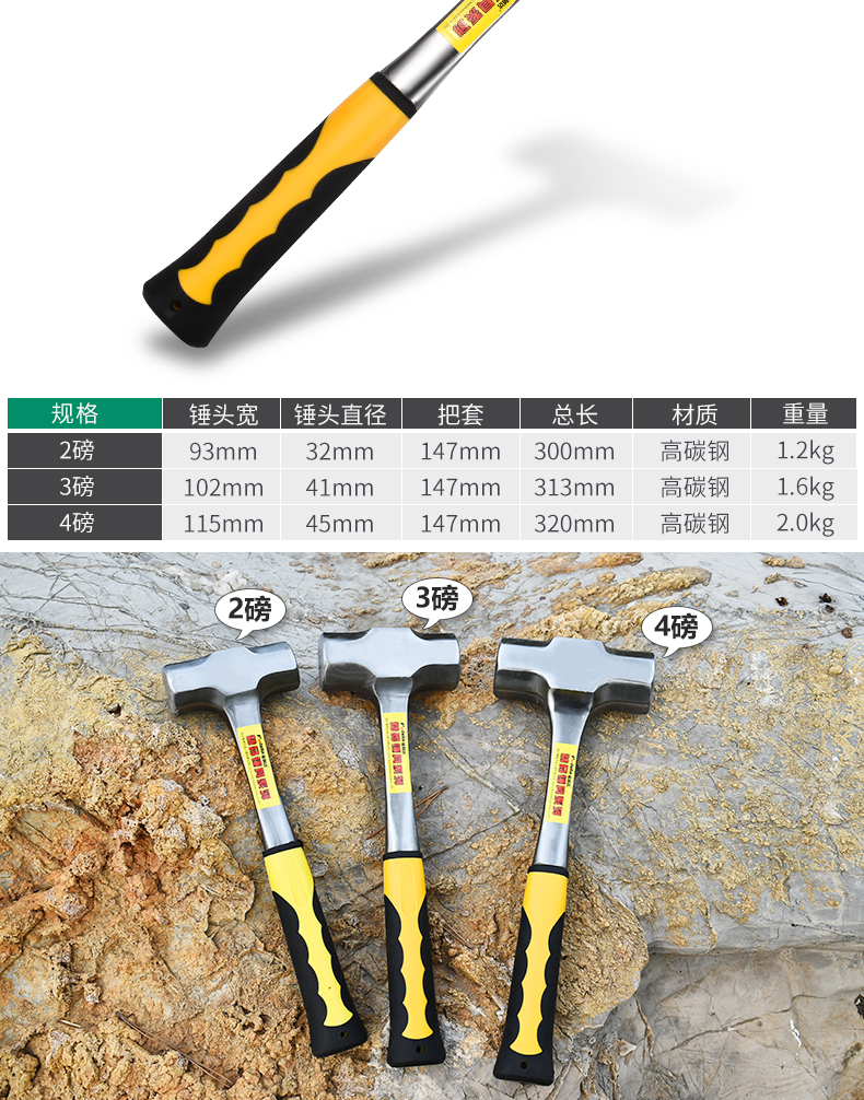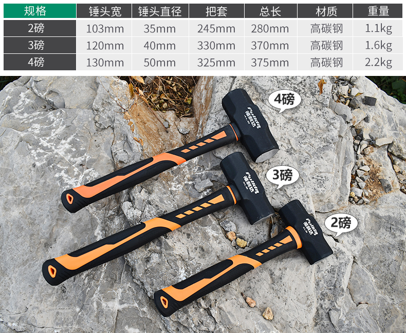 石工包膠鋼柄八角錘高碳鋼錘子鐵榔頭方錘2p3p4p防滑鋼製方鐵錘