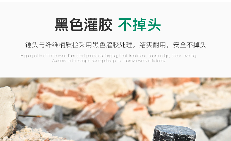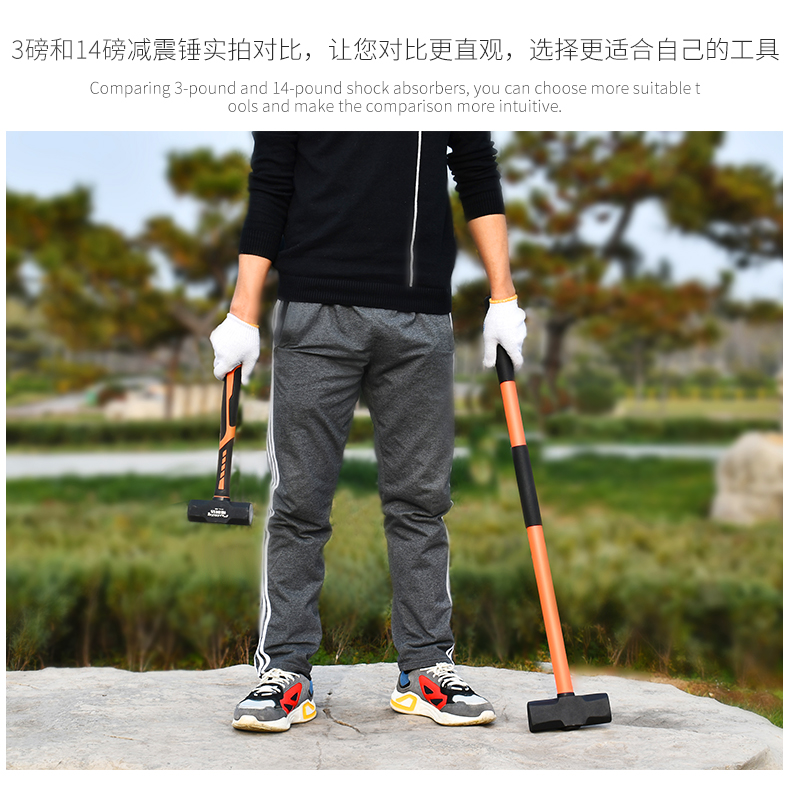 纖維柄石工錘高碳鋼 重型方頭錘榔頭錘子1000g 鐵錘砸牆拆牆工具